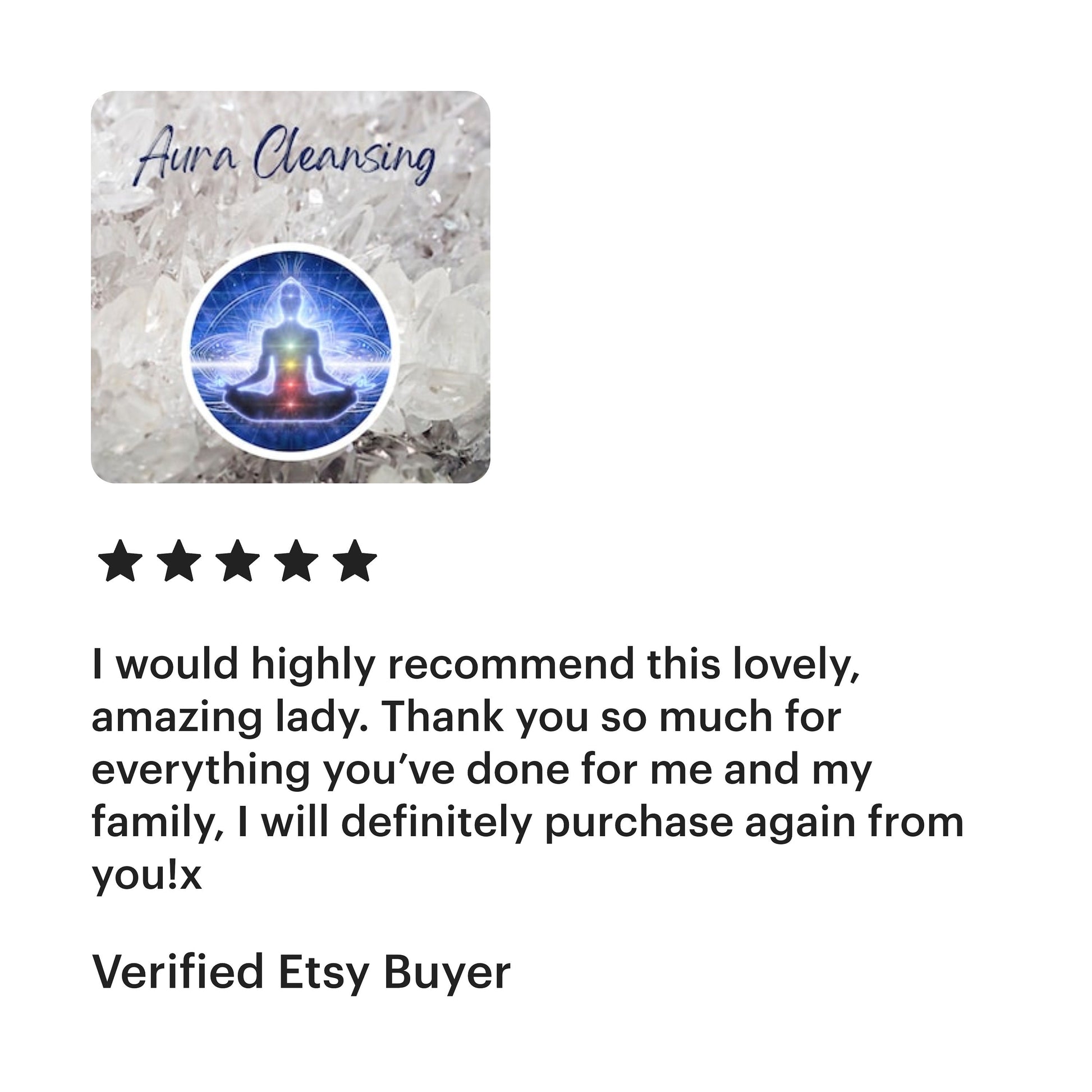 "100% would recommend these aura cleanse, with everything going on in life it's good to look after you. I could feel the result after kristy message to say it was finished. Thank you."