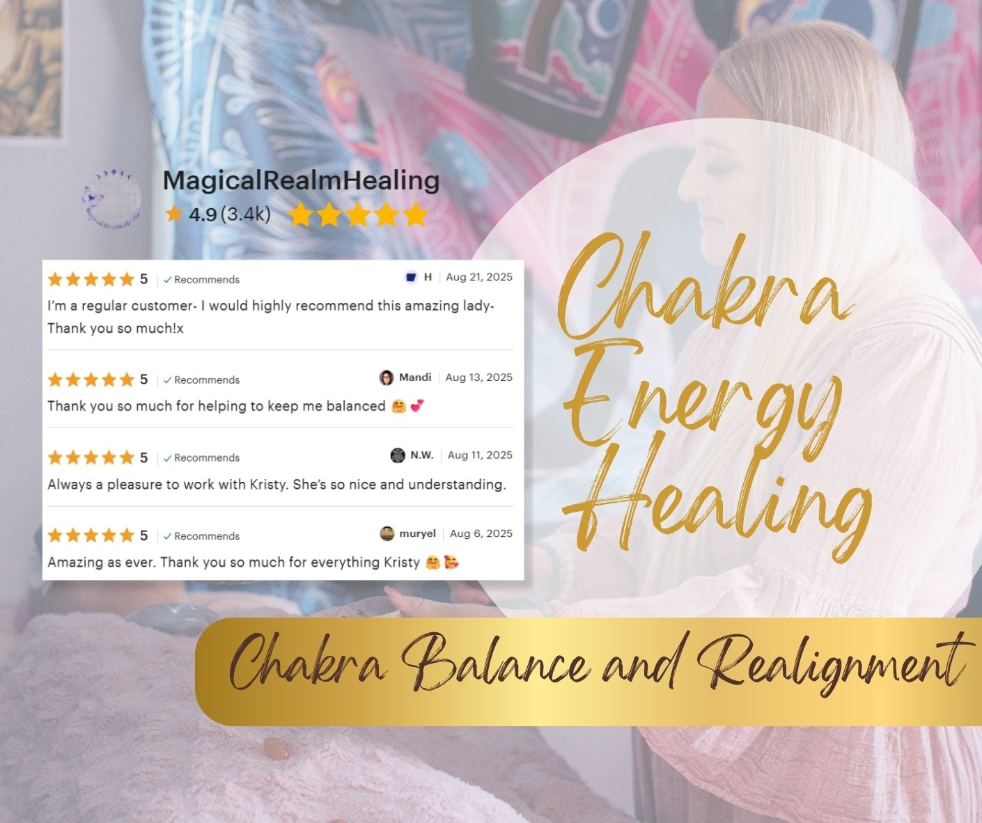 Chakra check and realignment FOR YOU! This healing realigns and balances all chakras, dissolving blocks that affect clarity, confidence, and emotional wellbeing. Combined with deep energy work, it restores flow through your energy centres so you feel centred, grounded, and uplifted. Ideal for stress, tension, low motivation, or feeling “out of alignment.” A beautiful reset for your mind, body, and spirit. A deep healing of all chakras is conducted with a full balance and realignment.