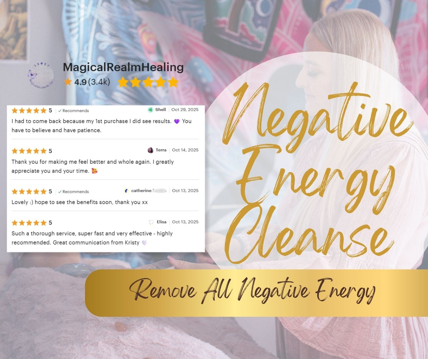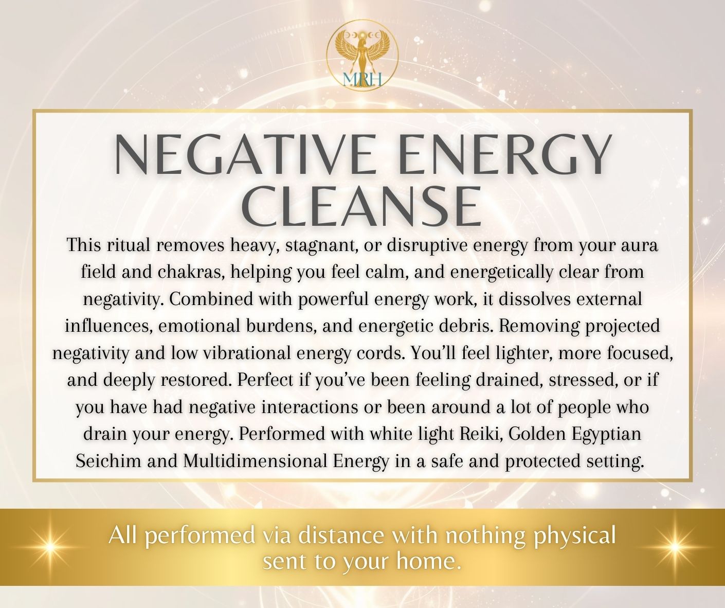 This powerful cleansing ritual clears stagnant, heavy, or disruptive energy from your chakras, aura, and physical energetic body, restoring balance and harmony throughout your entire field. As I work through your system, dense energy held in the lower chakras, emotional layers, and physical layer is released, allowing clarity, flow, and lightness to return. All seven layers of your auric field are deeply cleansed, and any negative cords, binds, or attachments draining your energy are fully dissolved.