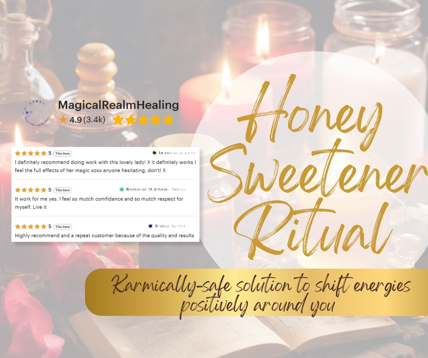 Whether navigating tricky dynamics at work, with family, or in romance, the Sweetening Honey Ritual offers a karmically-safe solution to shift energies positively. Beyond personal interactions, this versatile ritual radiates love and kindness, ideal for self-love rituals or spreading blessings to others. Embrace its transformative energy and watch as it sweetens your relationships and creates a ripple of positivity in your world.